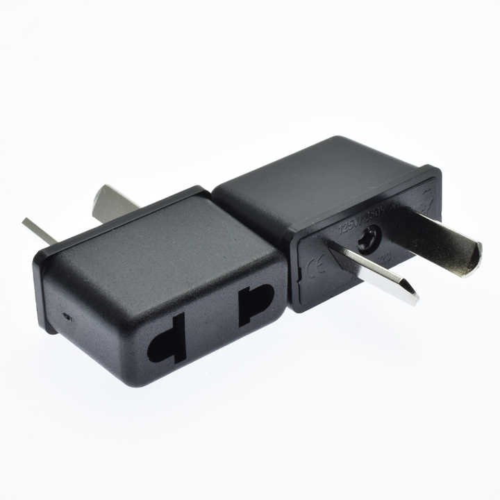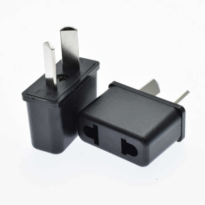 A compact voltage converter (6A/220V) for low-power devices, designed for international travel in a sleek black casing.