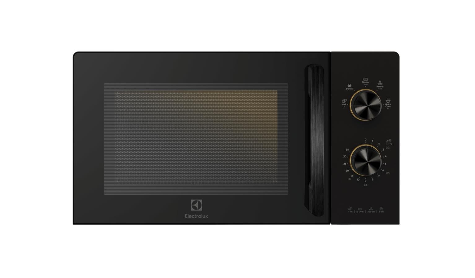 The Electrolux EMM-20K22B is a 20L freestanding microwave oven with 800W microwave power. It features mechanical control, 5 power levels, defrost setting, and a timer. The child lock ensures safety during operation.